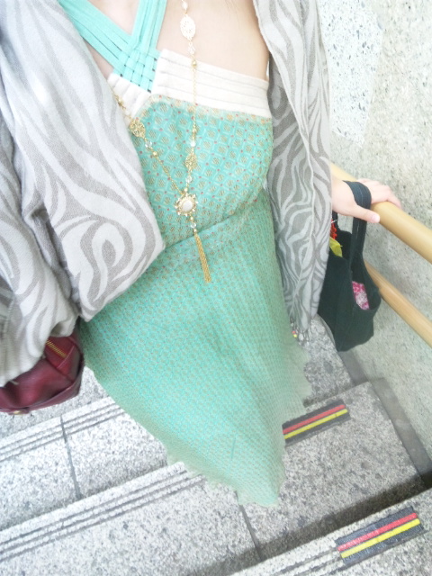 緑はあまり着ないんだけど、リボンのチャームが可愛くてつい買ってしまった^q^ミントグリーンと茶色と赤と金の組み合わせって可愛いな!